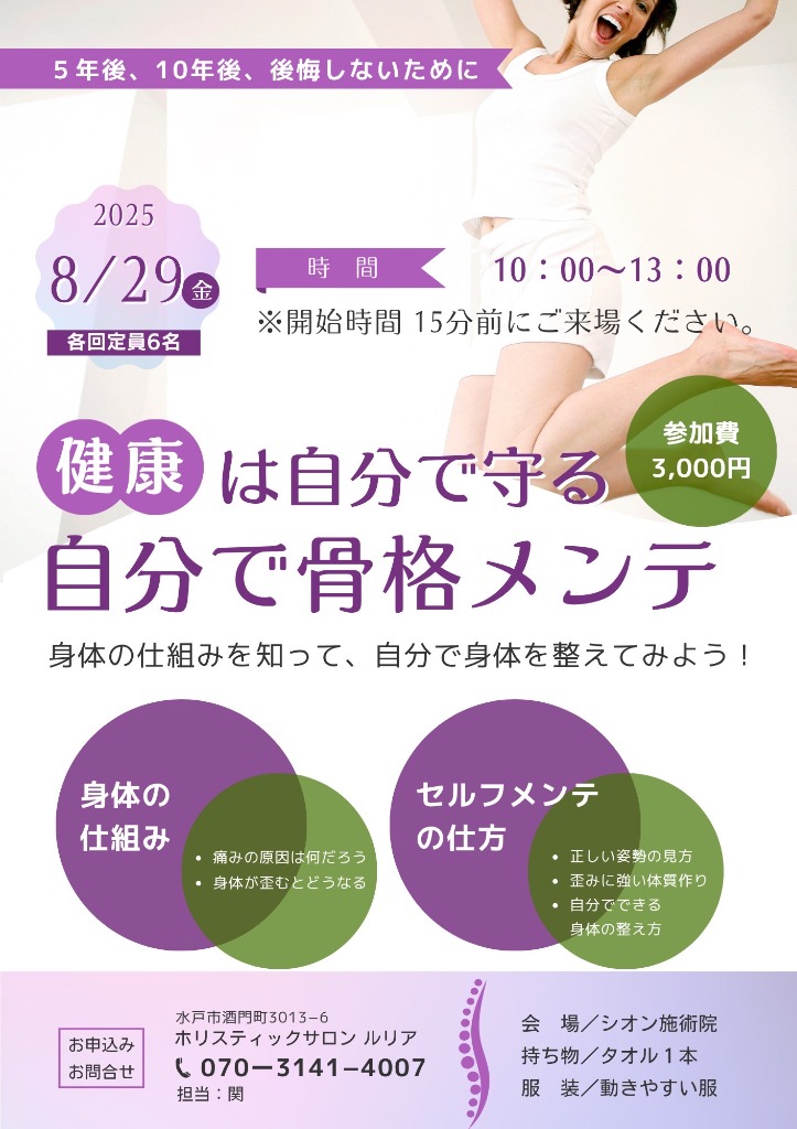 ホリスティックサロン ルリアでは、水戸 カイロプラクティックの施術を通して、姿勢と体の巡りを根本から整えます。